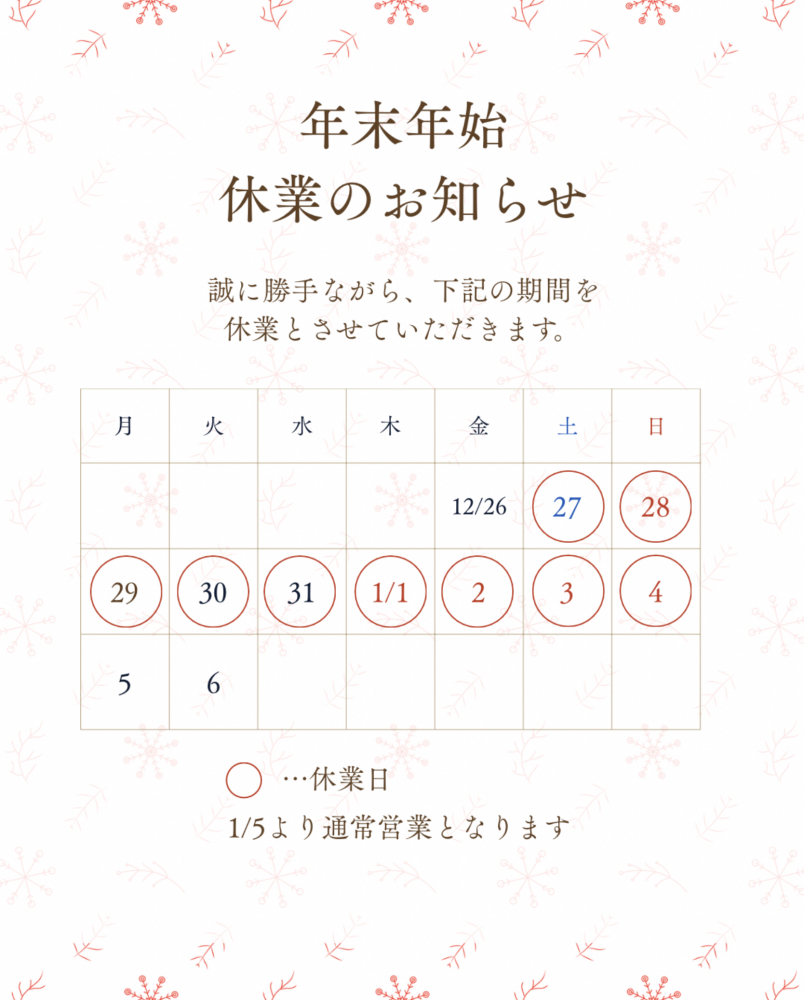 【年末年始休業のお知らせ】|丹波篠山市の不動産のことなら地域密着のマツオ不動産です